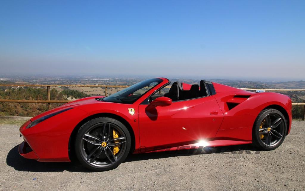 Version TOP de la 488, la 488 Spider contient tous les concepts classiques de Ferrari: deux places, décapotable, un moteur arrière. Le 488 Spider remplace le 458 Spider et pèse 10 kg de moins, grâce à un cadre utilisant 11 alliages différents et à l’utilisation de magnésium qui, en plus de réduire le poids, assure une plus grande rigidité en torsion que le 458 Spider. Au lieu d’un toit en toile traditionnelle, le 488 Spider conserve le toit rigide amovible en métal qui caractérisait déjà le précédent 458 araignée; Celui-ci est replié dans un compartiment placé au-dessus du moteur en 14 secondes. La grande attention qui a été consacrée au son, offrant un nouveau son complet, propre et absolument distinctif, est particulièrement évident dans la version Spider.